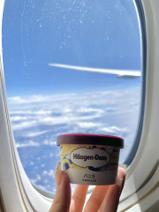 機内が非常に寒かったため、震えながらハーゲンダッツをいただきました(笑)