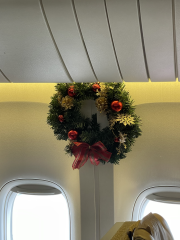 また、飛行機に乗り込むと、なんとリースが飾ってありました!